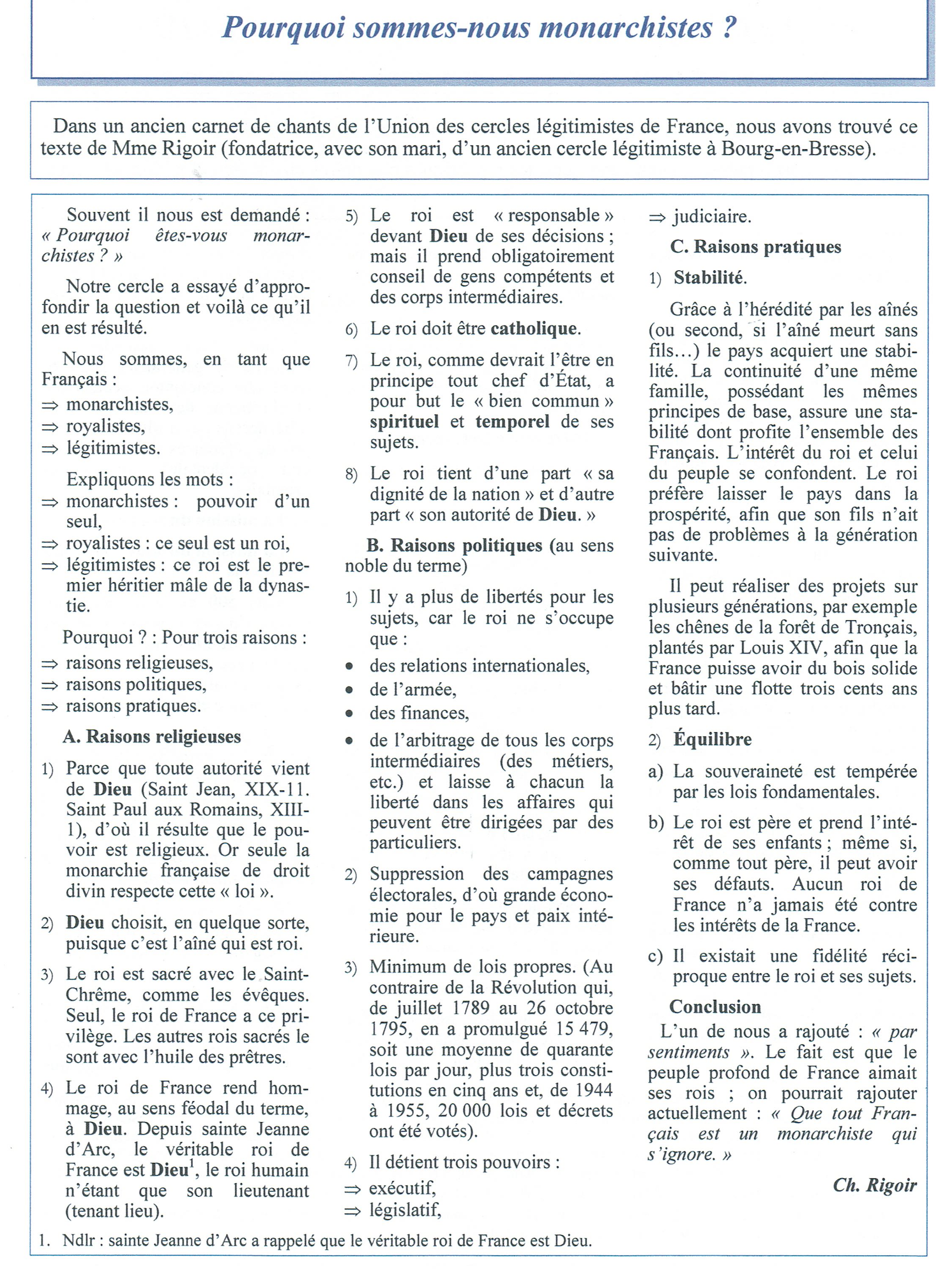 NOS RAISONS POUR LA MONARCHIE